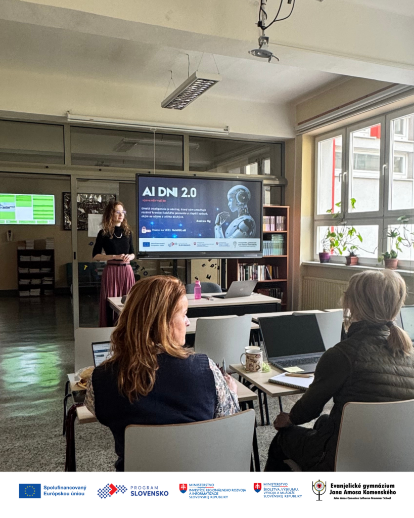 Vo štvrtok 19. marca 2026 sme na našej škole zorganizovali AI deň 2.0, ktorý bol spojený s aktualizačným vzdelávaním. Dopoludnie sme venovali štyrom workshopom, počas ktorých sme si umelú inteligenciu nielen vysvetlili, ale aj prakticky vyskúšali.