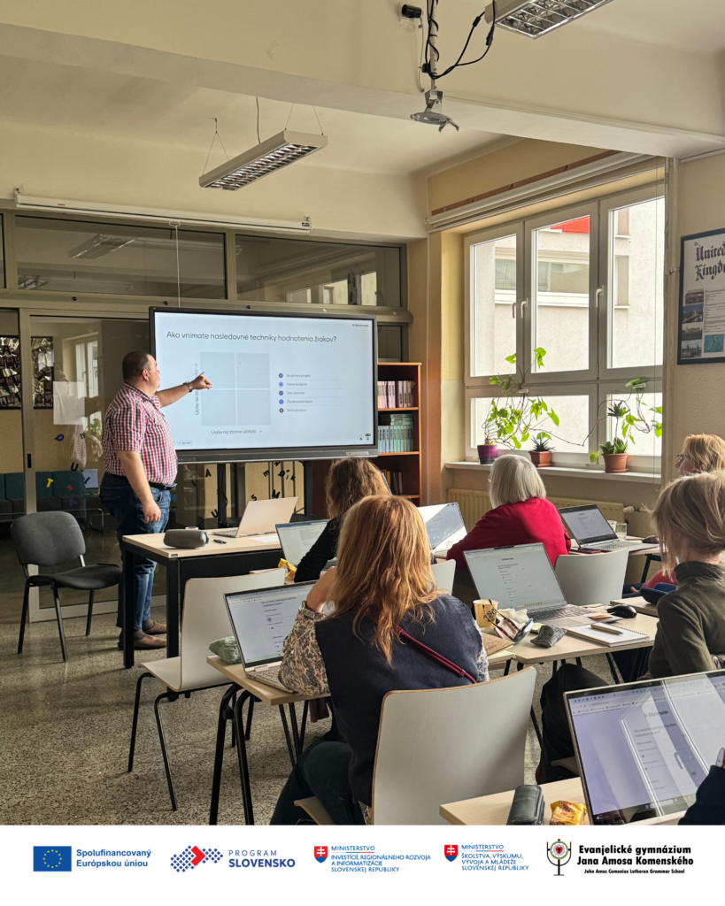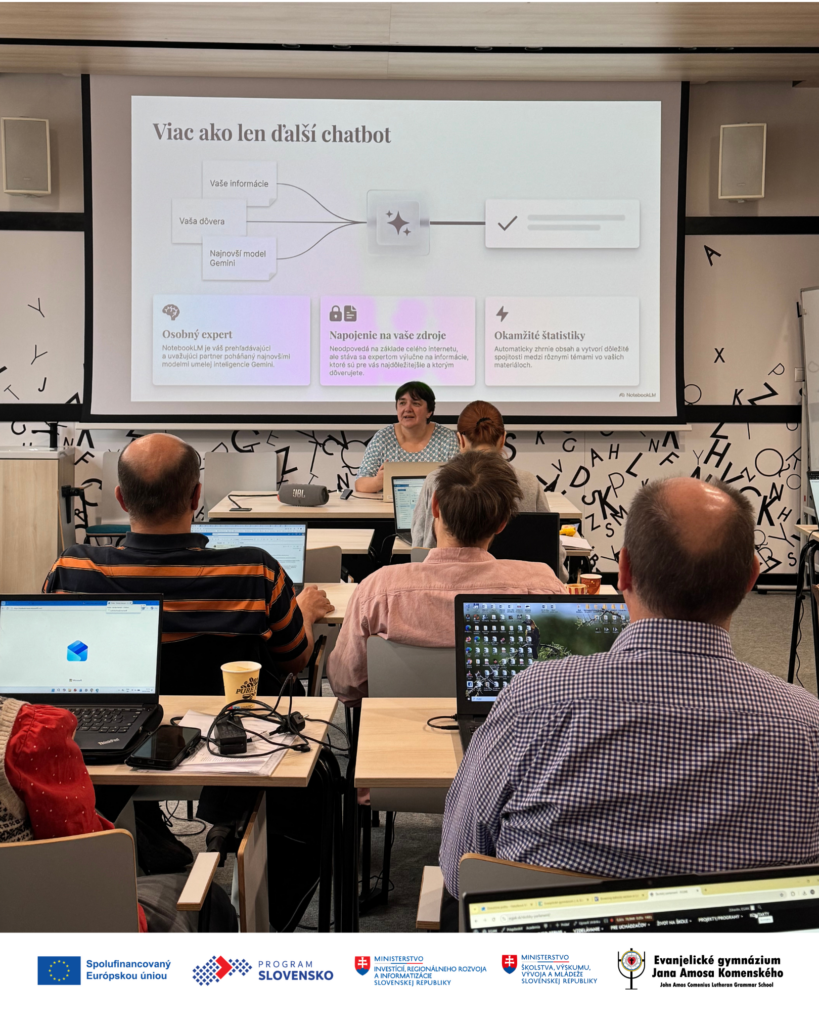 Naši učitelia si v rámci workshopov vyskúšali rôzne nástroje využiteľné vo vyučovaní, napríklad Kahoot, MagicSchool, Notebook LM, Mentimeter či Suno AI. Workshopy viedli naši kolegovia R. Komariková, K. Rabatinová, M. Halušková a Ľ. Rozner, ktorým ďakujeme za ochotu podeliť sa o svoje skúsenosti aj užitočné tipy.