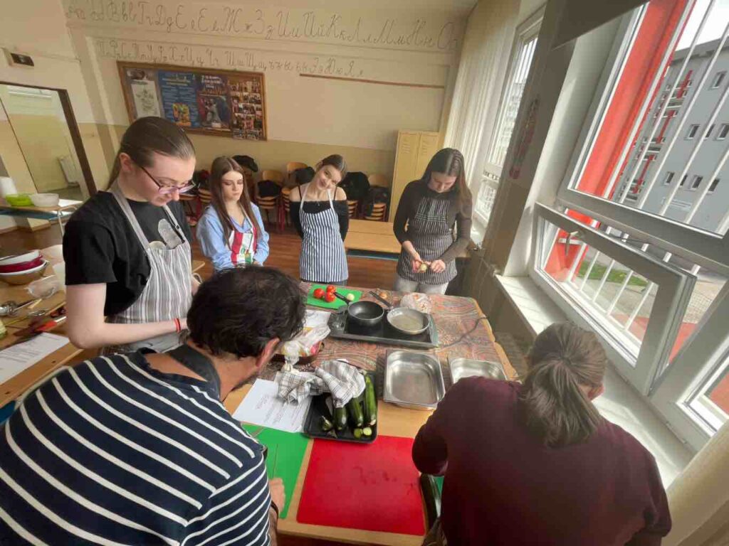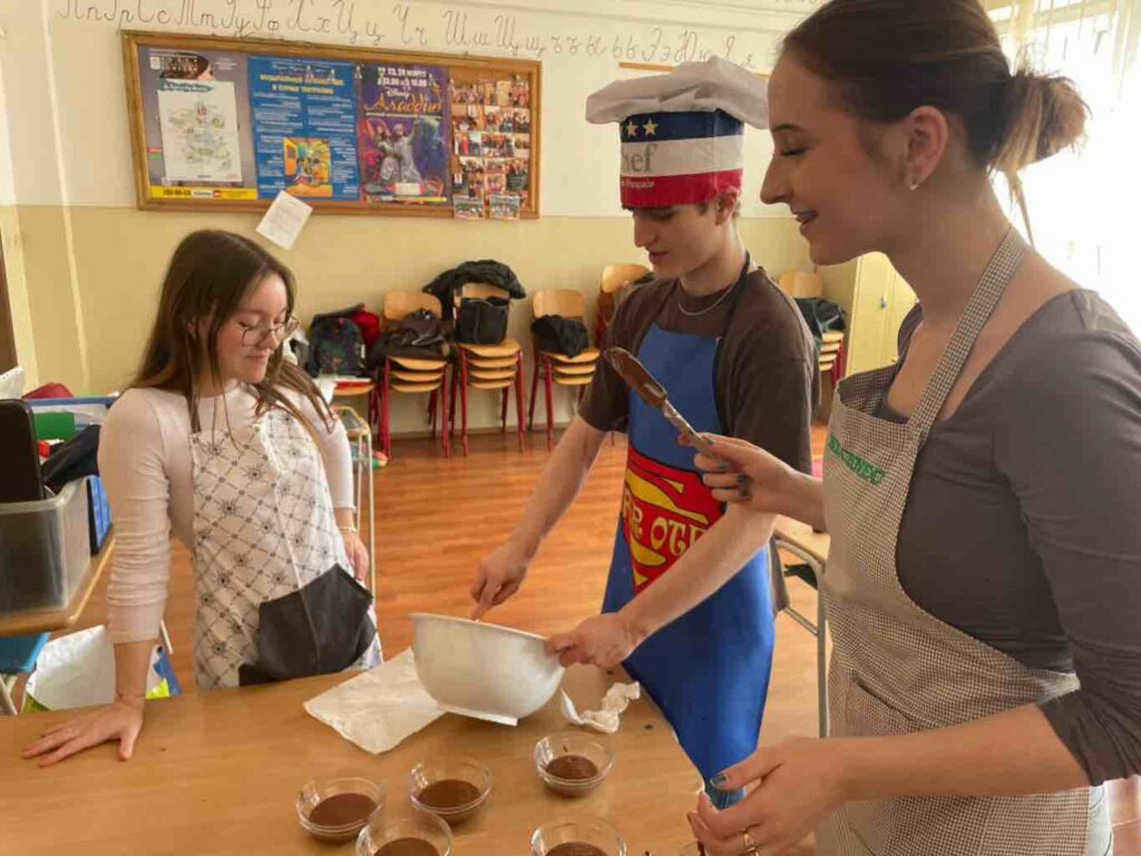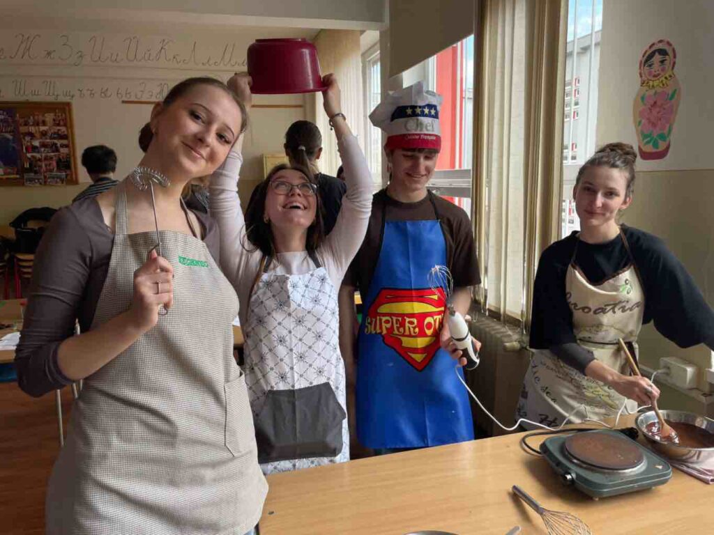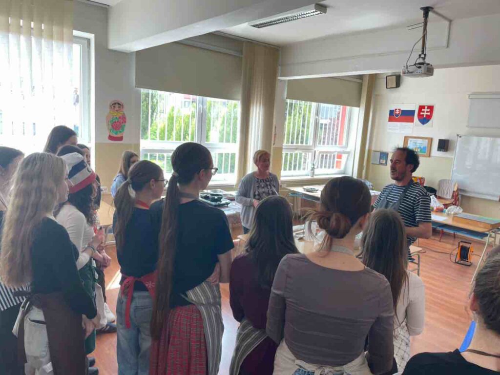Žiaci francúzskeho jazyka z 3. B a 4. B sa zúčastnili kuchárskeho ateliéru s francúzskym kuchárom Françoisom Bouillet. Počas spoločného stretnutia si mali možnosť vyskúšať prípravu tradičných jedál francúzskej kuchyne a zároveň si rozšíriť svoje jazykové vedomosti praktickou formou.